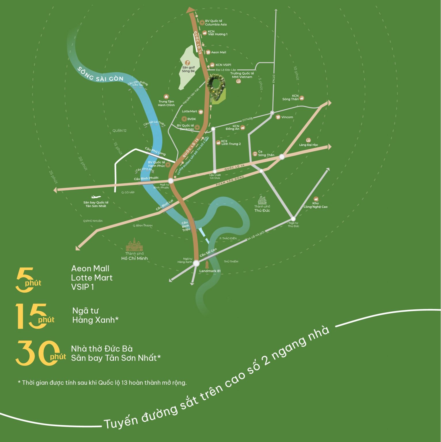 Ngoài ra, bằng tuyến đường Mỹ Phước – Tân Vạn sẽ giúp mọi cư dân của dự án và vùng lân cận liên kết với các tỉnh thành thuộc khu vực Đông Nam Bộ như: Đồng Nai; Bình Phước và các khu công nghiệp trọng điểm.