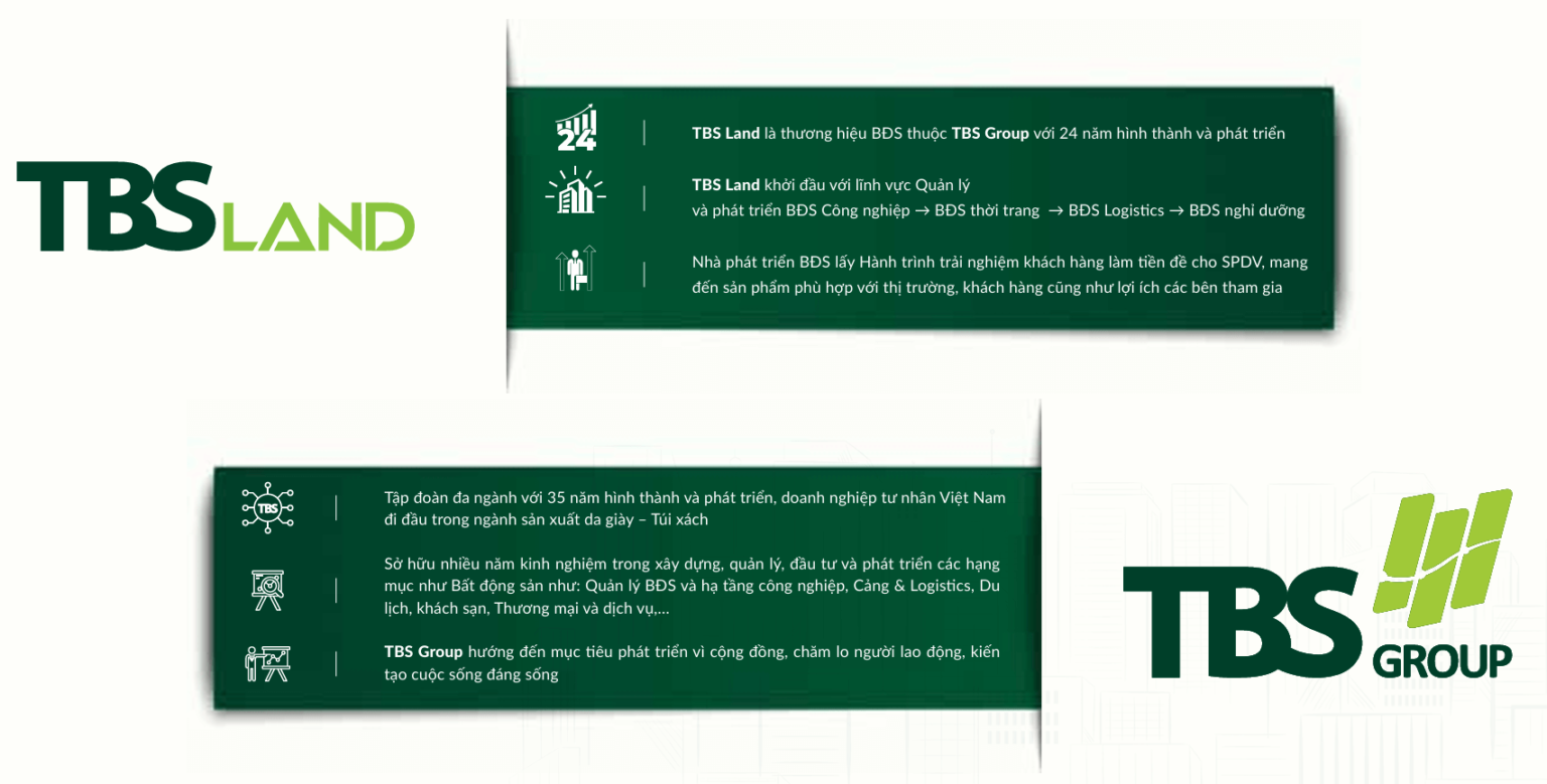 TBS Land là đơn vị thành viên thuộc TBS Group (thành lập 1992) với hơn 25 năm hoạt động, với danh mục đầu tư tập trung 5 lĩnh vực gồm: